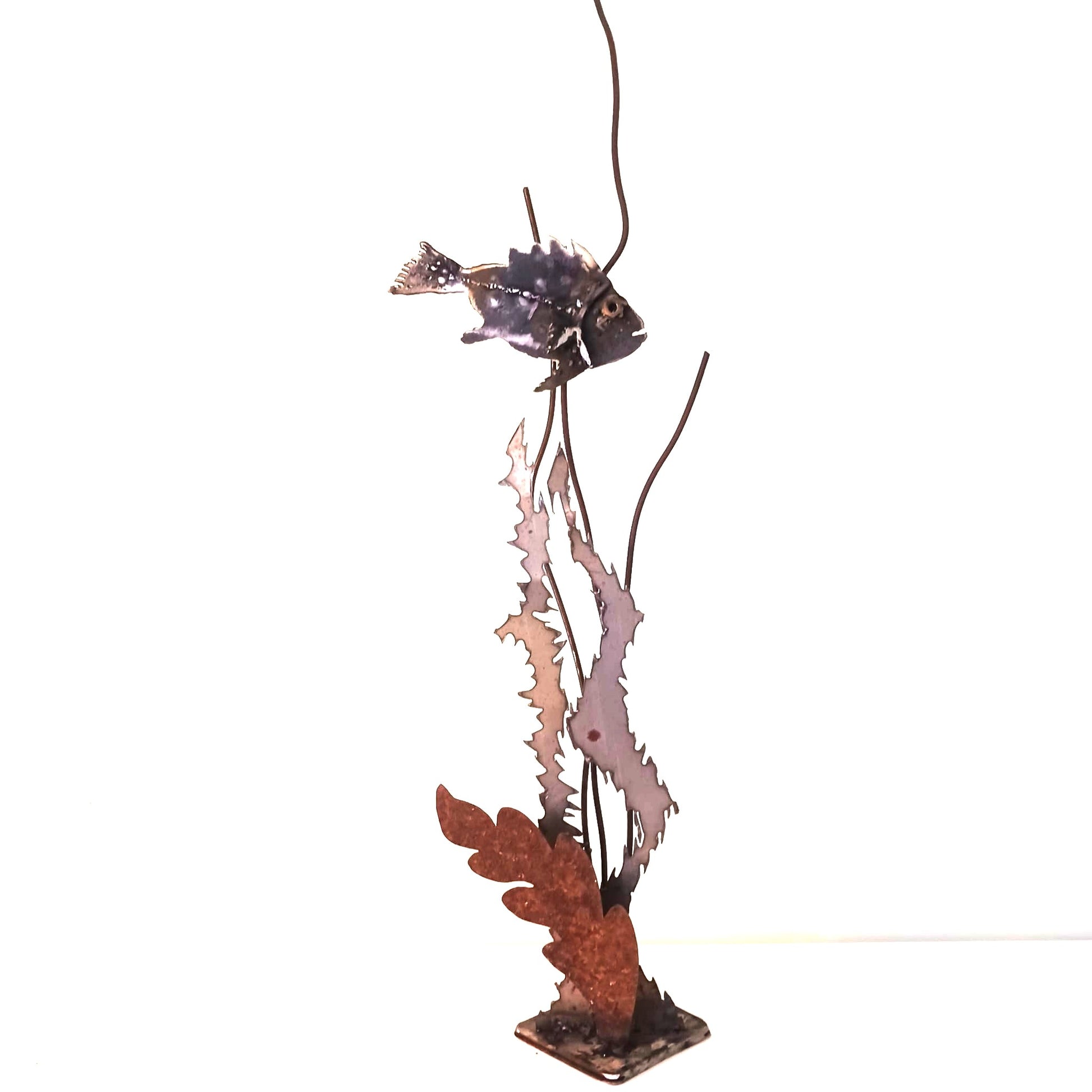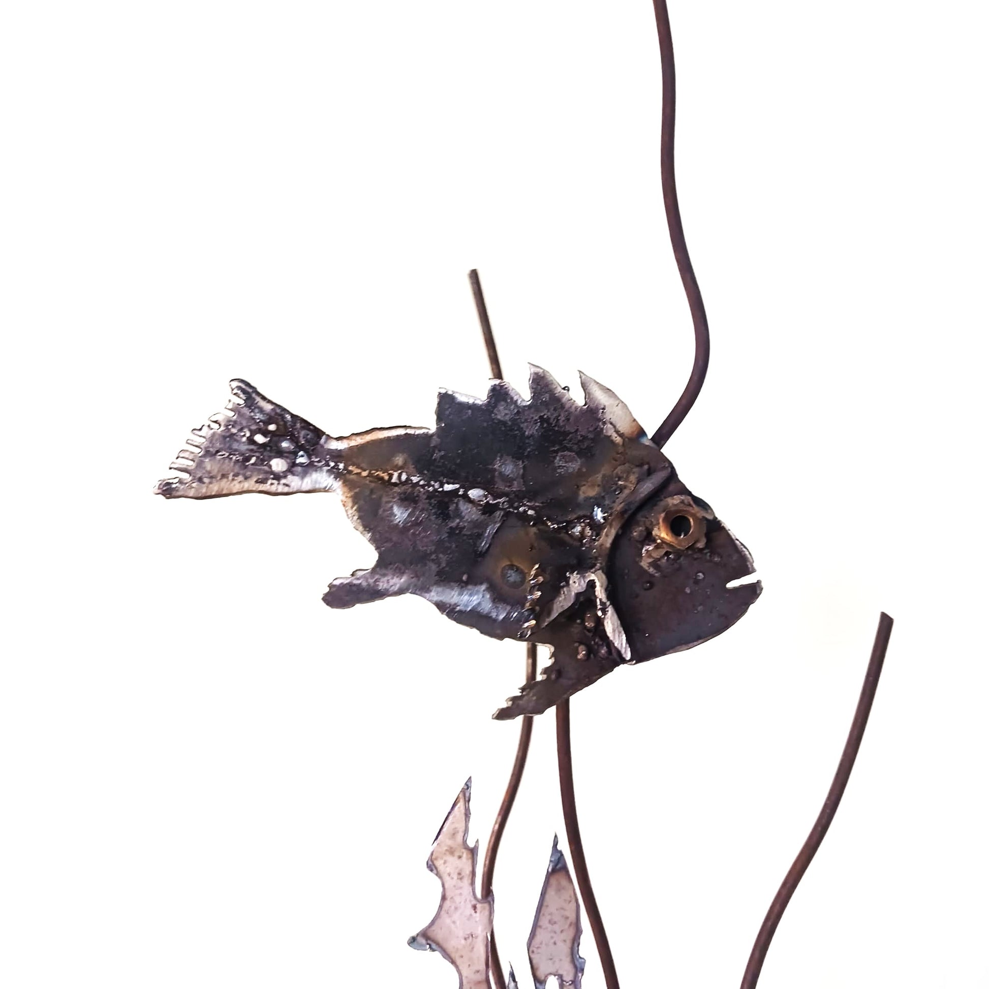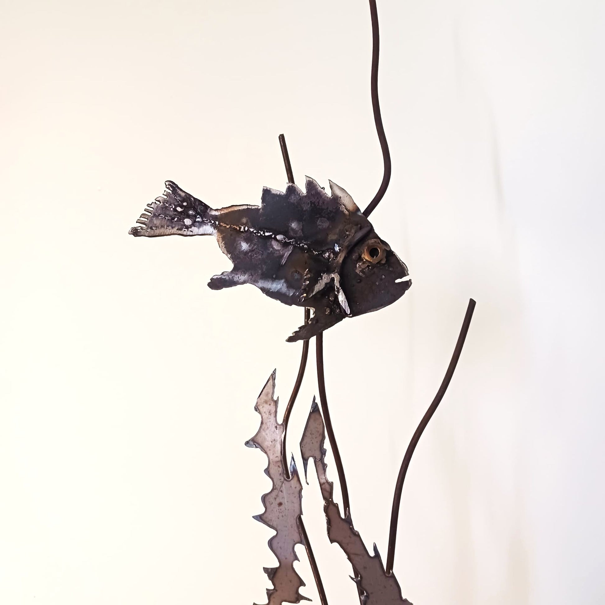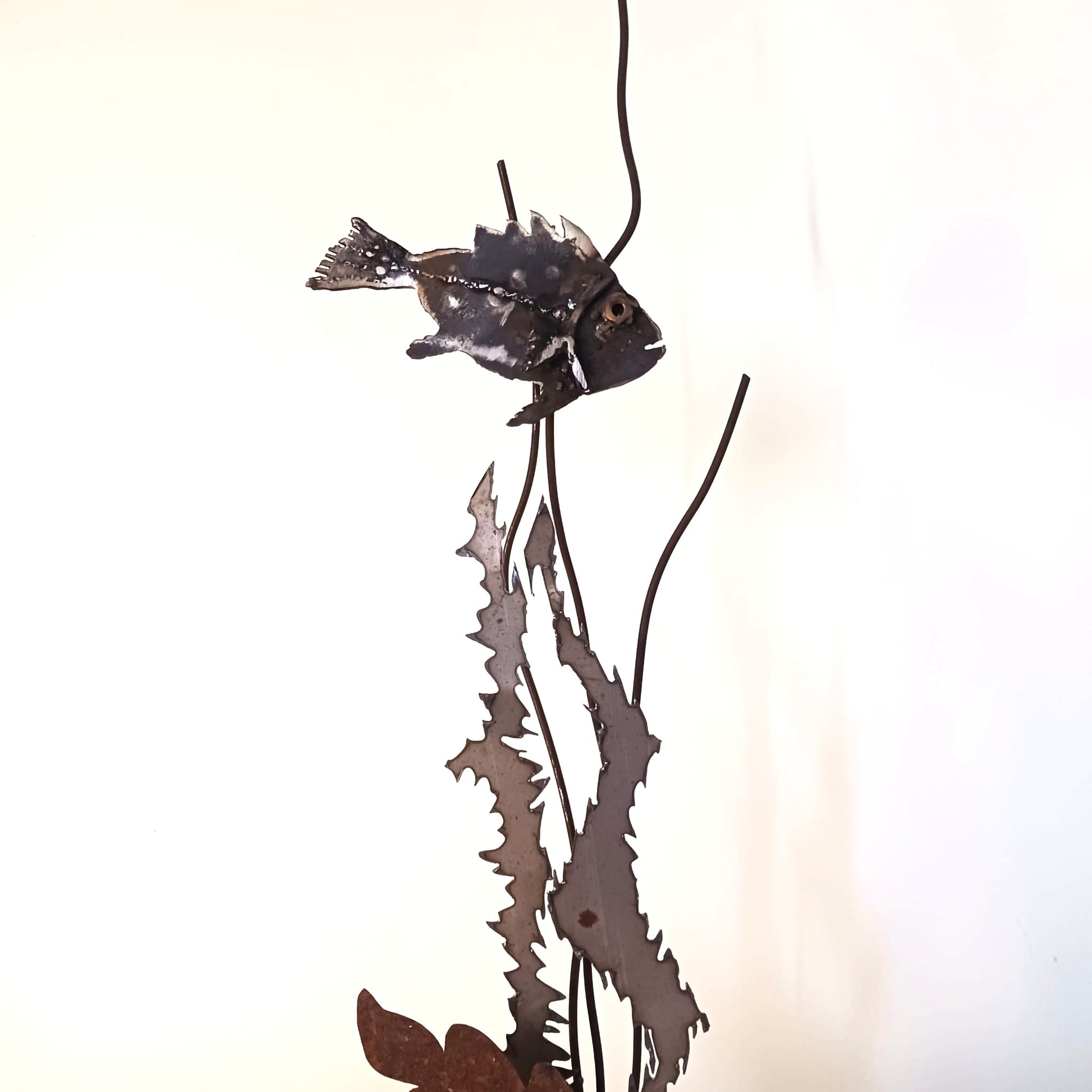 acquario in ferro riciclato realizzato con l'uso di scarti di lavorazione di officine siderurgiche.h55 cm