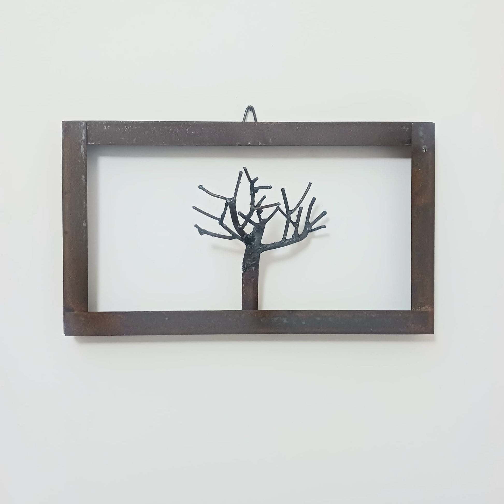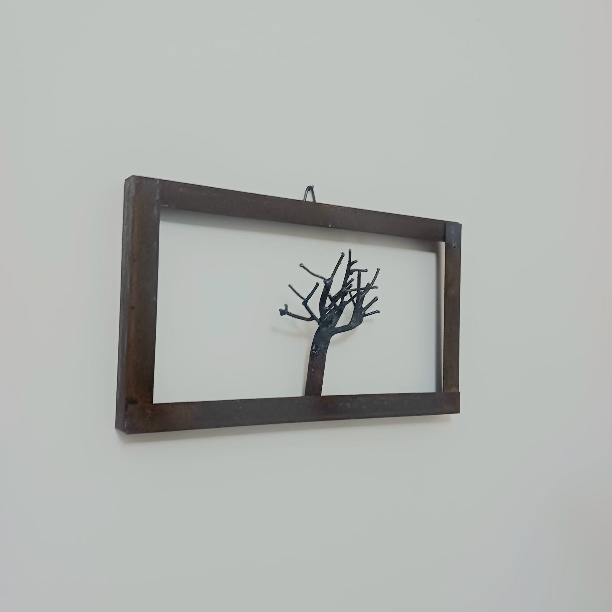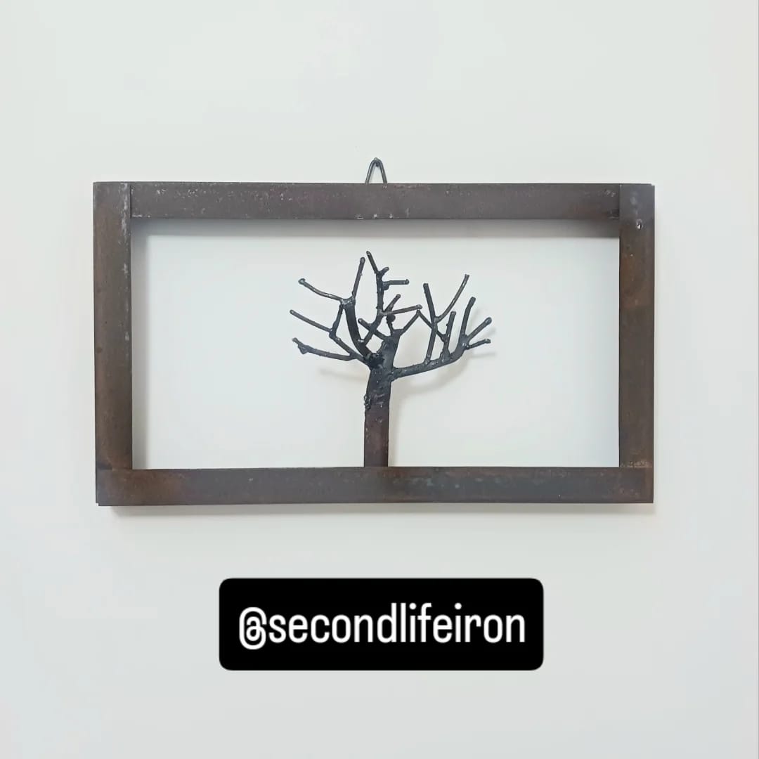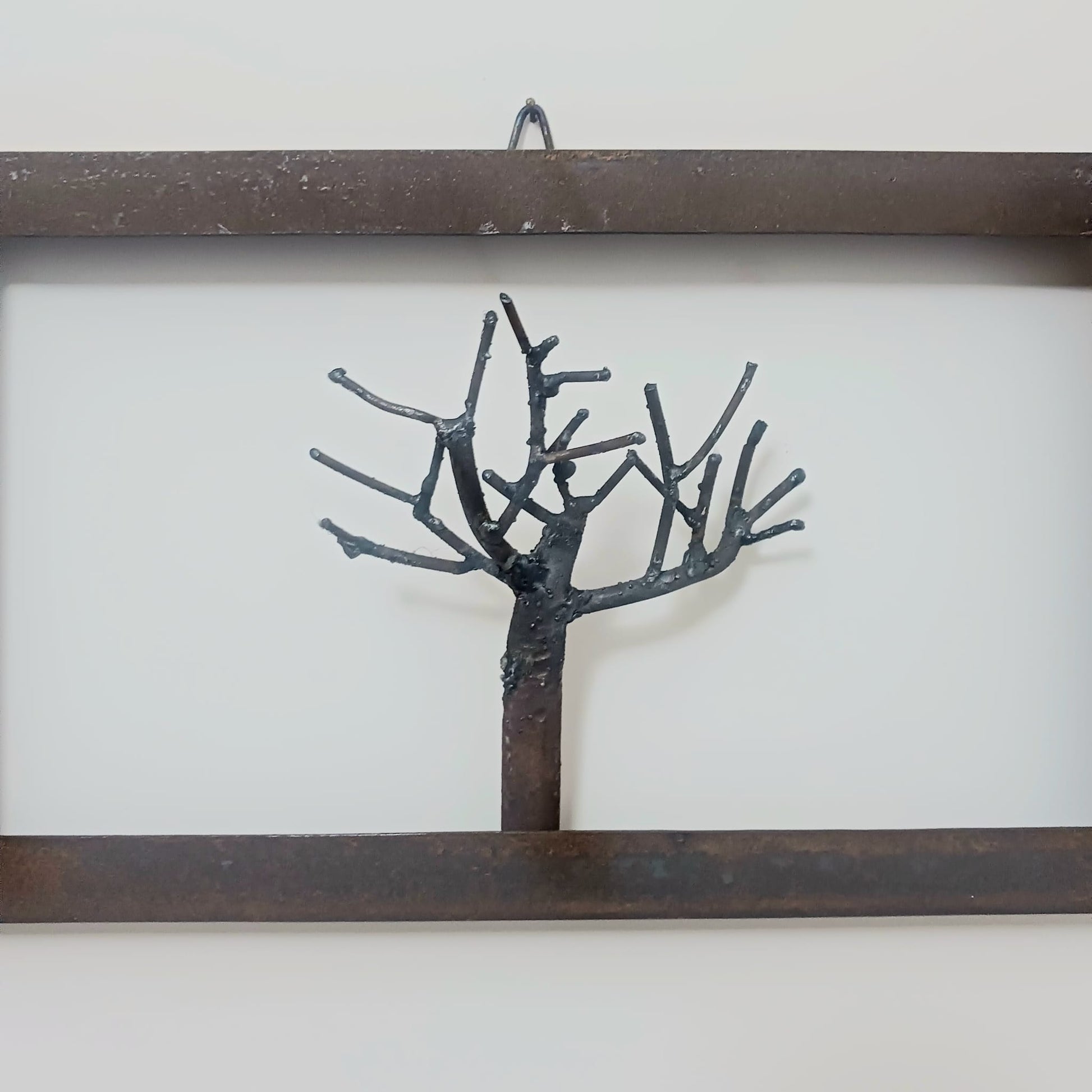 realizzato con parti di imballaggi in ferro, un vecchio chiodo di ferrovia e alcuni scarti di lavorazione (tondino)