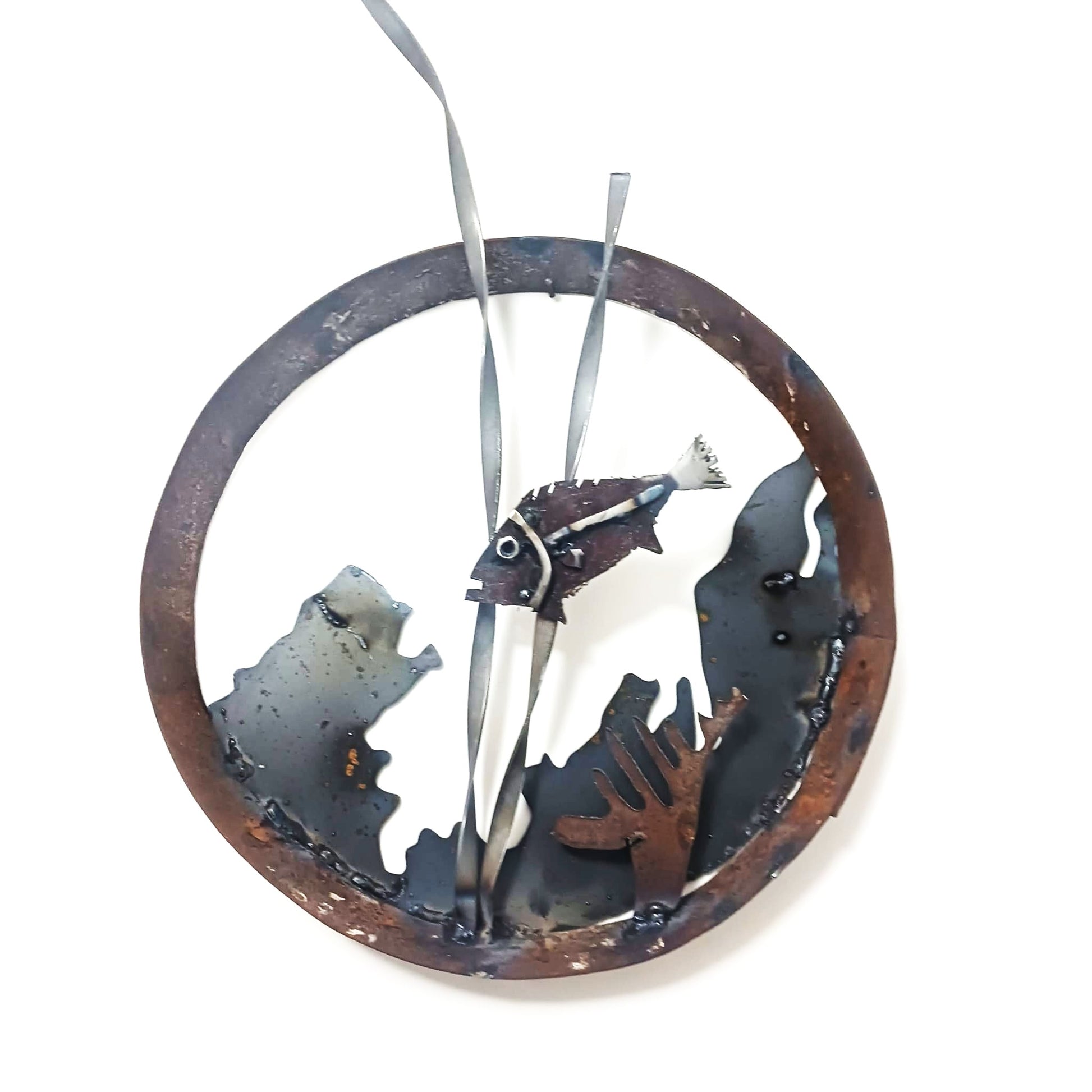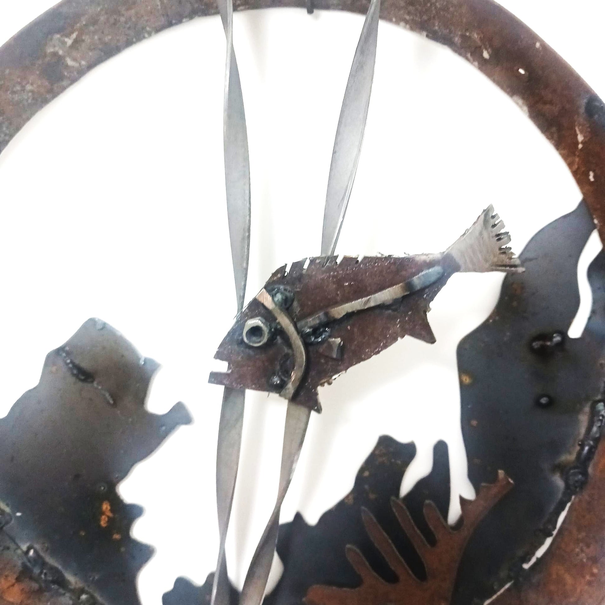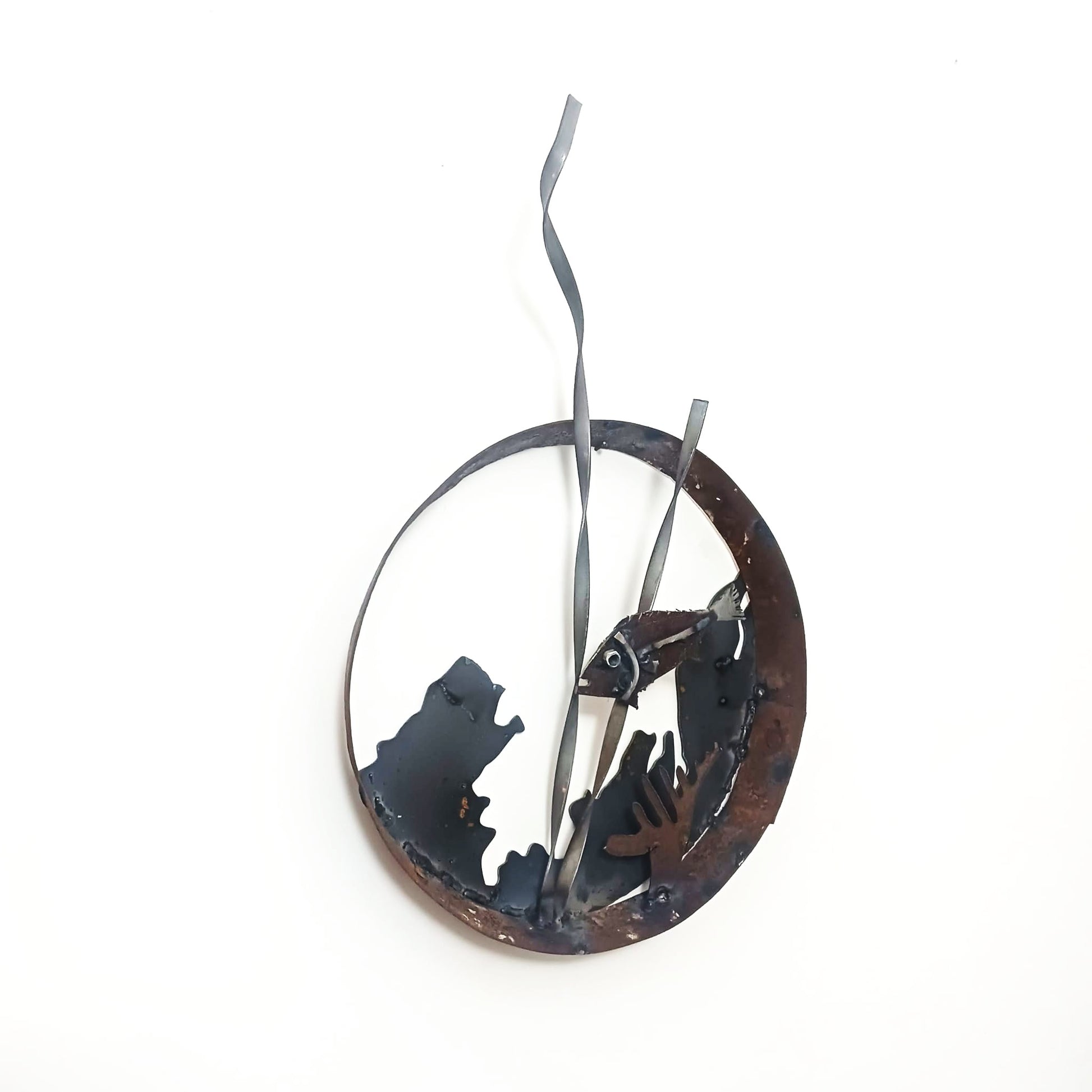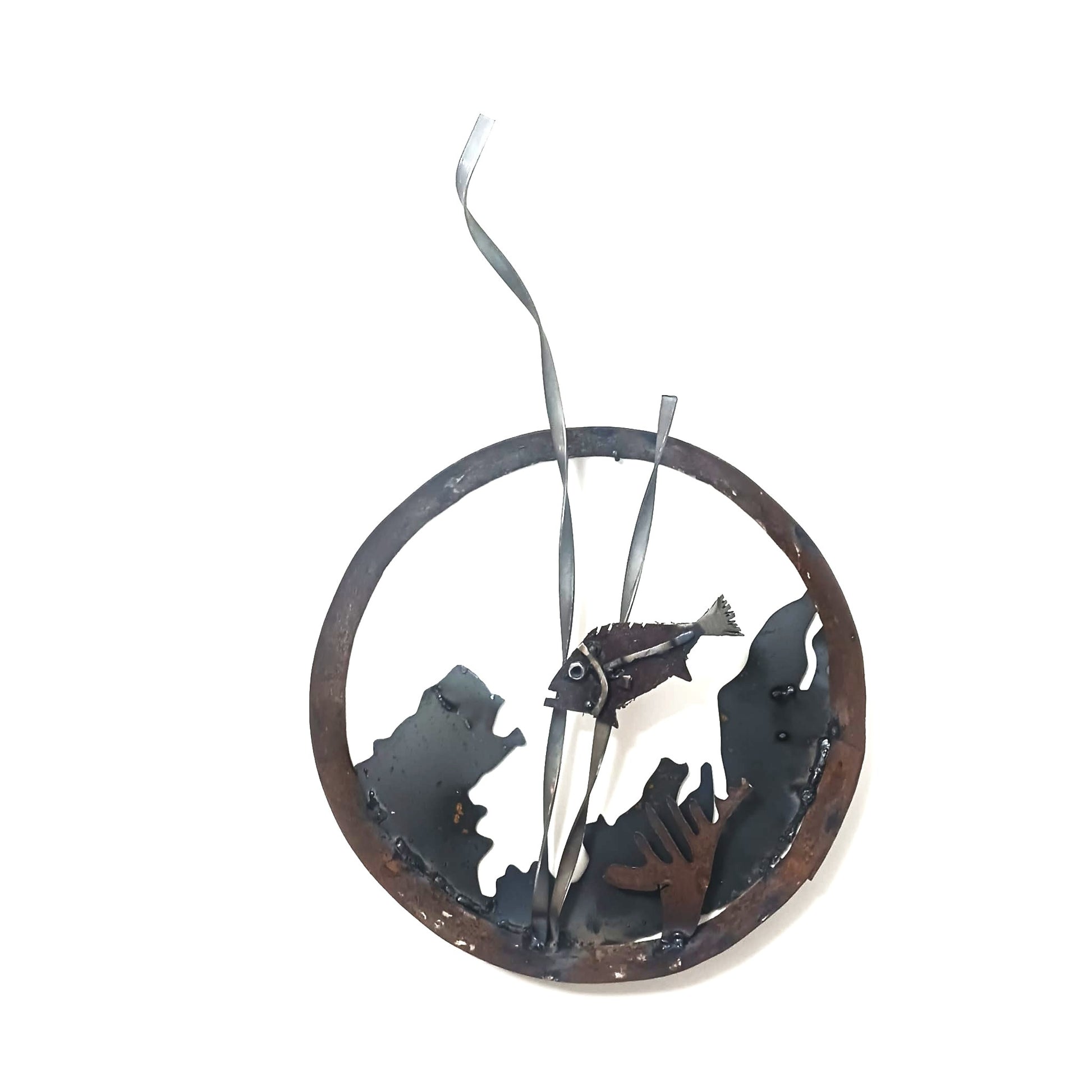 reralizzato con un vecchio cerchio di una botte per il vino il resto dei pezzi è ricavato da scarti di lavorazione di fabbri e del mio stesso lavoro.
